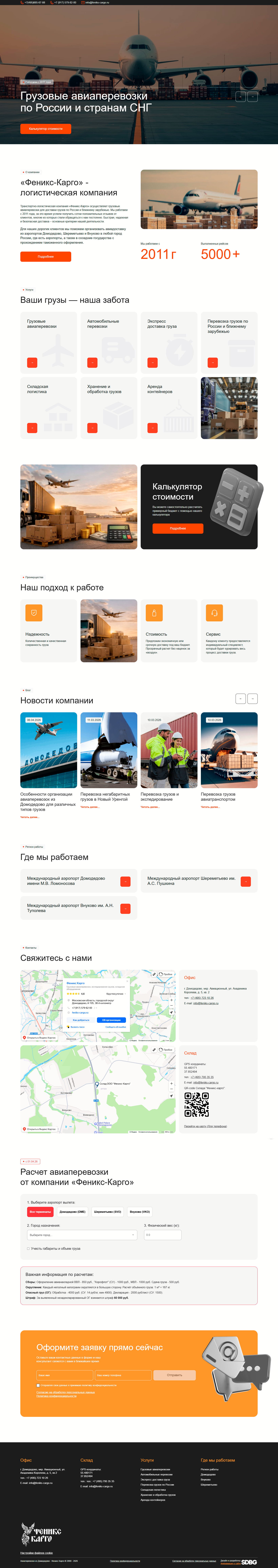 В ходе работы мы переработали структуру страниц, улучшили навигацию, адаптировали сайт под современные устройства и усилили акценты на ключевых направлениях компании: авиаперевозках, автомобильных перевозках, экспресс-доставке, складской логистике и перевозках по России и ближнему зарубежью. Новый сайт стал современнее, удобнее и эффективнее как для пользователей, так и для дальнейшего продвижения.